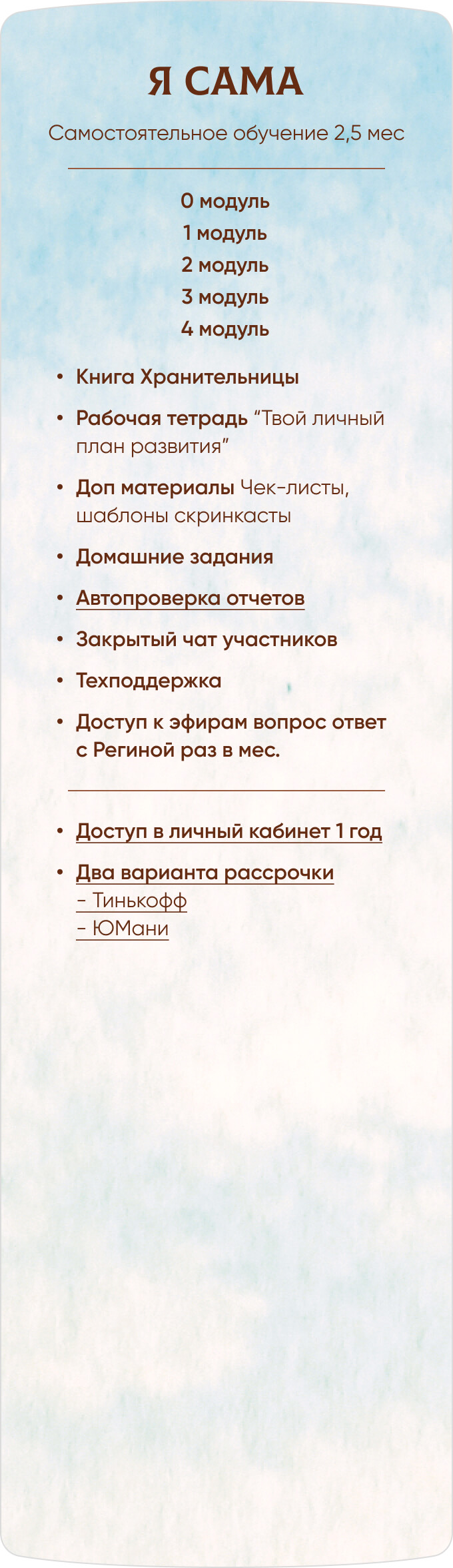 Уже практикуешь сама! Имеешь опыт участницы тренингов и кругов. Хочешь еще и еще потому что знаешь ценность развития и трансформации. Ищешь опору и смелость чтобы начать работать с людьми!