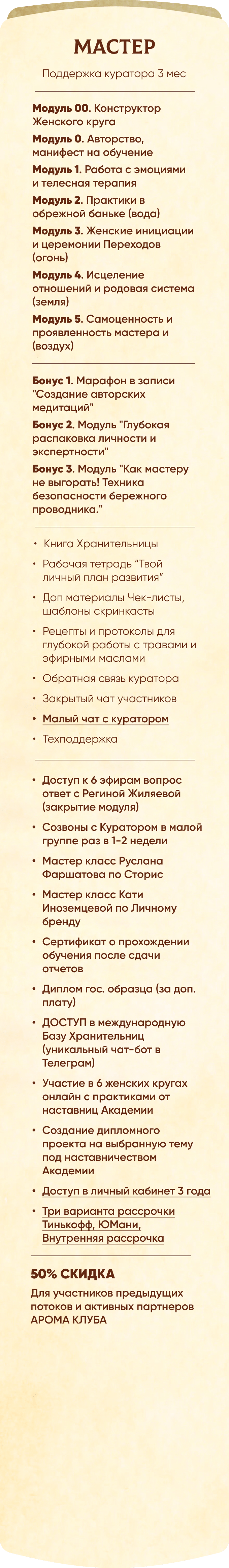 Давно практикуешь сама, проводишь круги или работаешь с женщинами. Хочешь овладеть новыми инструментами, повысить ценность и востребованность своих услуг.